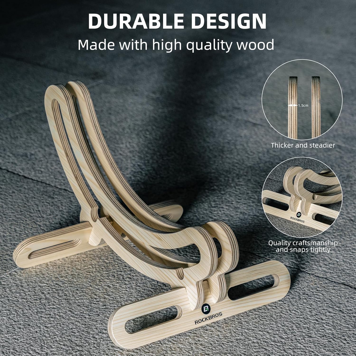 - QUICK DISASSEMBLY ASSEMBLY: ROCKBROS wooden bike stand is extremely easy to assemble with no tools required. It only takes 2 minutes to finish the installation instantly. In addition, this parking rack is easy to carry, whether you ride outdoors or park your bike indoors, you can easily install and fix your bike.